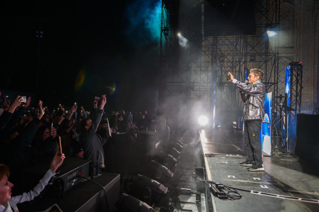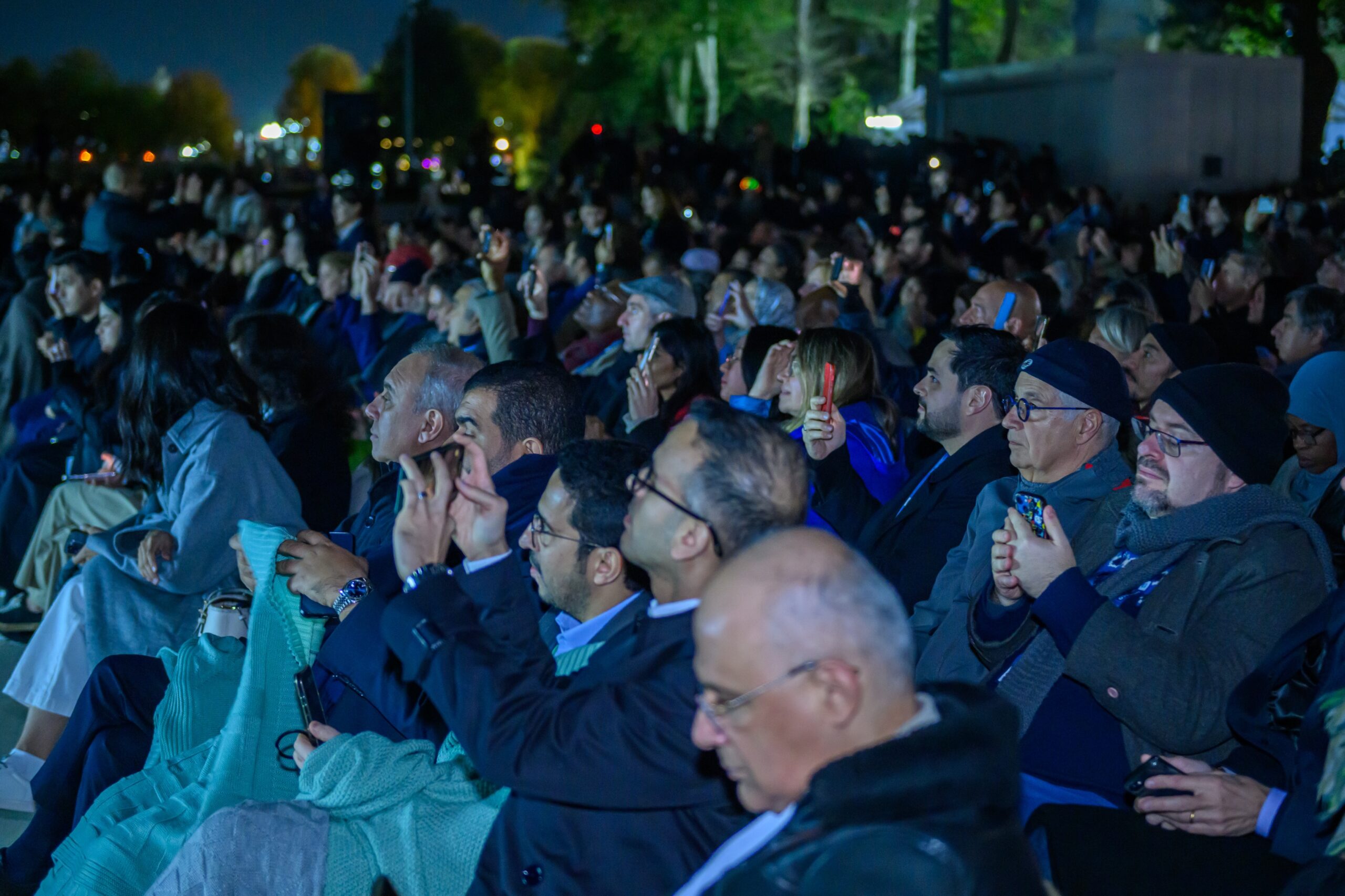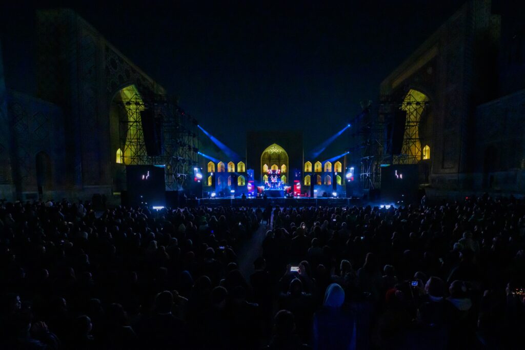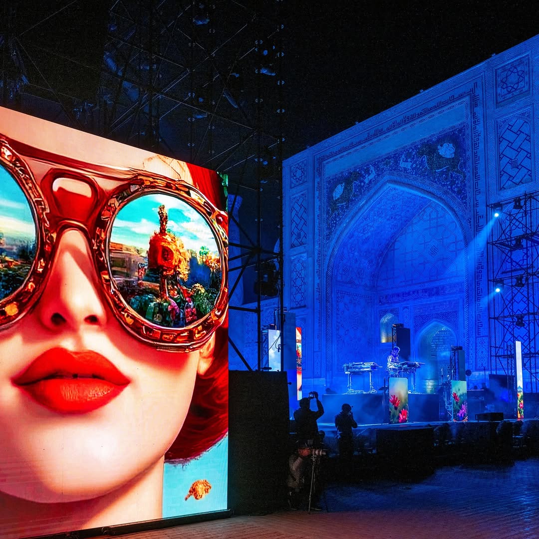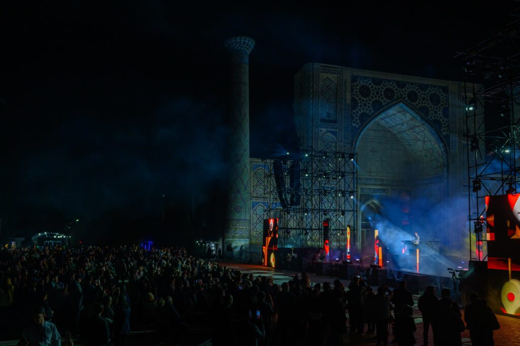 Neste fim de semana, seu deslumbrante concerto-tributo iluminou a Praça Registan em Samarcanda, transformando um dos locais históricos mais emblemáticos do mundo em uma sinfonia de luzes, som e arquitetura.