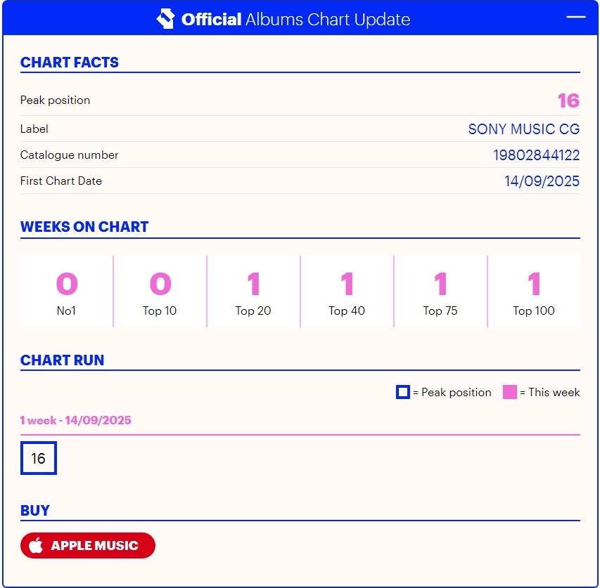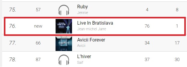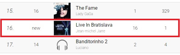 POSIÇÃO DE “LIVE IN BRATISLAVA” EM CHARTS EUROPEUS NA PRIMEIRA SEMANA