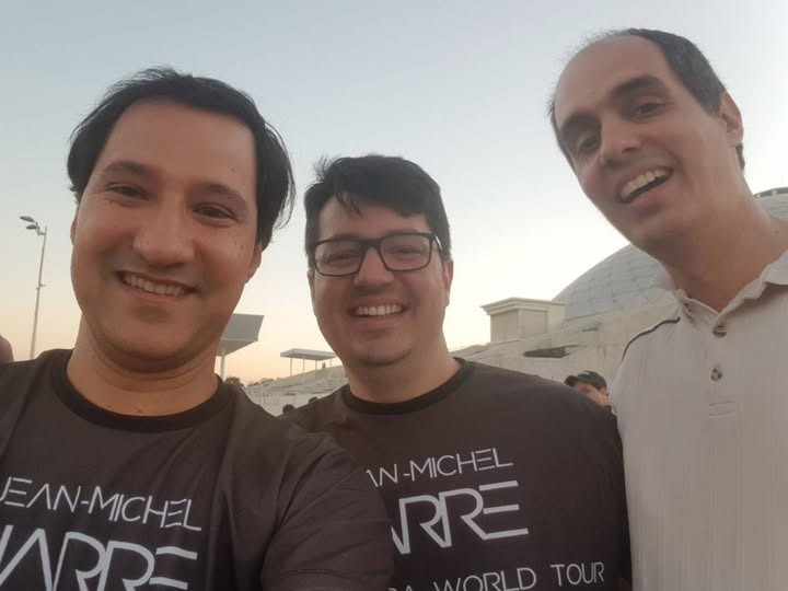 Ele realizou o sonho que o movia: presenciar um concerto de Jean-Michel Jarre e eternizar aquele instante com um sorriso luminoso ao lado de seu ídolo.