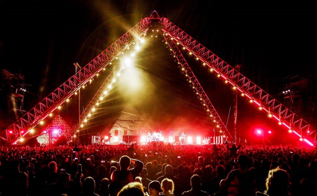 Sabemos do fascínio que as pirâmides sempre exerceram. O desejo de realizar concertos lá não é recente. Numa foto famosa de 1961, vemos o músico Louis Armstrong tocando trompete em frente à Esfinge. Na época, tratava-se apenas de uma oportunidade para tirar fotos, como parte de uma visita turística paralela a um passeio do trompetista. Foi em 1979 que o cantor Frank Sinatra, também conhecido como “A Voz”, se tornou o primeiro a realizar um show de gala nas pirâmides, a convite da primeira-dama do Egito, Jihane el-Sadat.