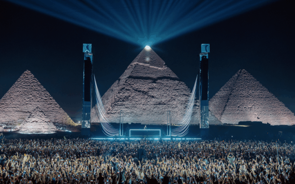 Será que o último show do artista de música eletrônica Anyma em frente às Pirâmides de Gizé, no início de outubro deste ano, será lembrado como a última experiência do gênero? Fã de espetáculos grandiosos com vídeos gigantes em 3D e feixes de laser, Anyma (metade da dupla italiana Tale Of Us) atraiu cerca de 15.000 fãs nas pirâmides. Após uma denúncia apresentada pelo Egyptian Center for Economic and Social Rights (ECESR – Centro Egípcio para os Direitos Econômicos e Sociais), que representa um grupo de arqueólogos e autoridades locais – incluindo o governador de Gizé – ainda não se sabe se os futuros shows planejados para o mesmo local poderão acontecer.