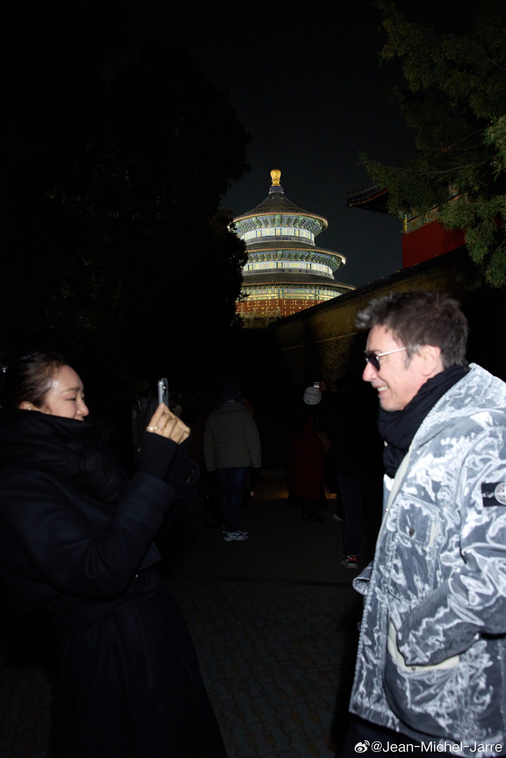 Ao longo do passeio, o casal foi visto desfrutando de momentos tranquilos de intimidade — selfies, beijos na testa e caminhadas de mãos dadas — conquistando os corações dos internautas com o carinho recíproco e genuíno. Mais tarde, Jarre compartilhou as imagens no Weibo (rede social controlada pelo Governo Chinês), expressando admiração pelo profundo amor de sua esposa pela cultura chinesa.